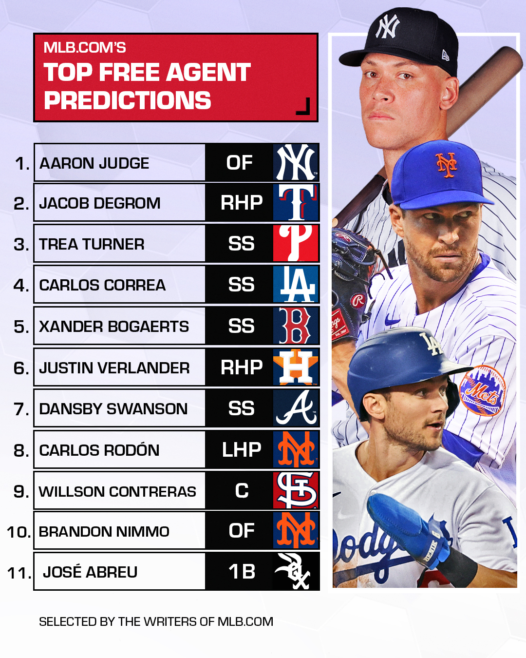 . Projected landing spots for top 17 free agents. LAS VEGAS -- True free agency in baseball begins today at 5 pm. The 2022 edition of MLB free agency got underway on November 10 and.